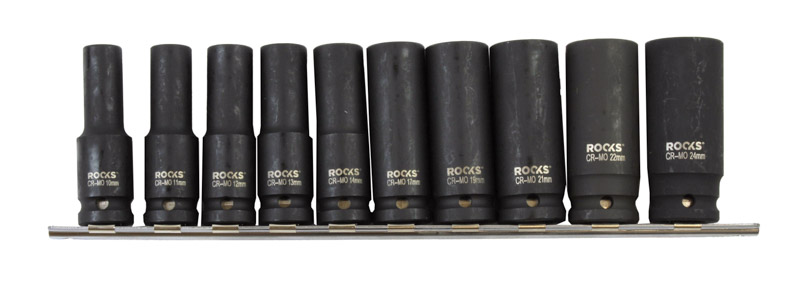 Zestaw nasadek udarowych długich ROOKS OK-01.5001, 6-kątne, 1/2″, 10 sztuk, 10–24 mm